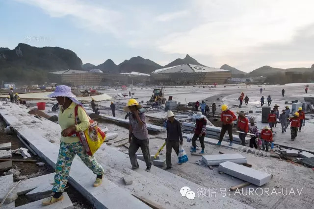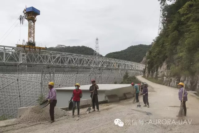 FAST射电望远镜的主体工程临近完成,工人正在清理路面沙石。由于交通相对闭塞,这里的村民与外界接触不多,对于这个突然出现的庞然大物,许多人显得很好奇,他们中的大部分人居住在五公里的核心区内,也需要搬迁至镇上居住。