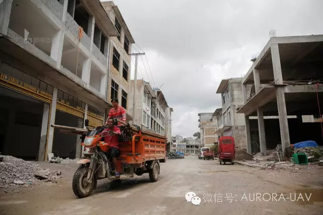 克度镇本地居民驾驶着三轮板车运送建筑材料,随着FAST项目逐步接近竣工尾声,克度“天文小镇”的名号逐渐被外界知晓,居住在镇上的居民们也看到了随之而来的商机,把自家楼房改造成度假酒店和商铺计划用于出租。