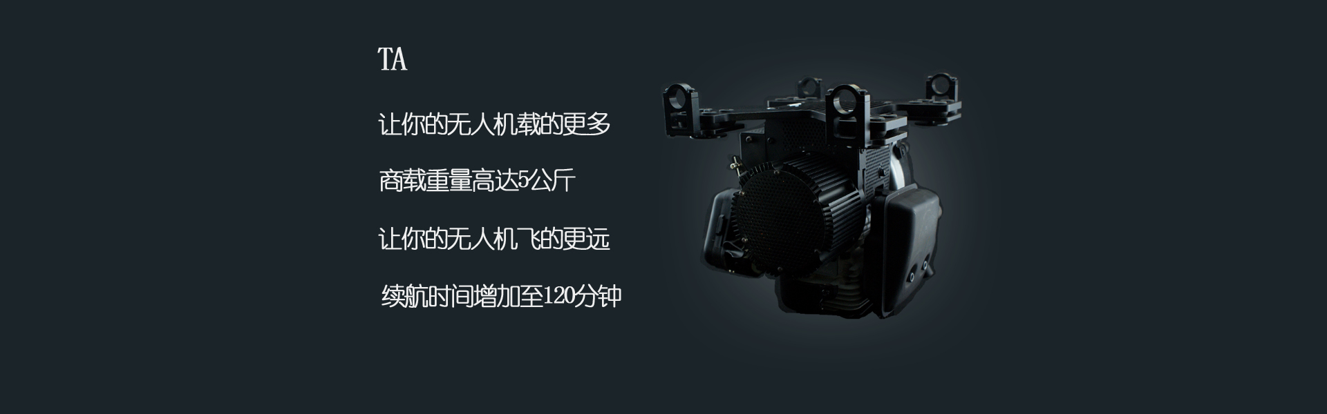 2016年11月公司成功研制出功率2KW的油电混合动力系统H2,此动力系统适用于起飞重量18kg以下的电动多旋翼和垂直起降固定翼。