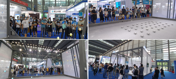 不仅如此,大漠大V2无人机在第七届国际无人机展览会的亮相同样惊艳四座,好评连连,被很多人称之为“会飞的小巨蛋”。展会现场,大漠大专门开辟了一块飞行表演区域,数十架无人机列好阵型,每隔一段时间便会进行一场表演。在为期三天的展会中,持续演绎了60余场表演,吸引了数以万计的观众和展商驻足观看,深圳市南山区领导莅临大漠大展位观看表演。表演中,只见无人机变换着颜色、形状,炫目的画面,独具创意的编队阵型,为展会带来新看点和新视野。