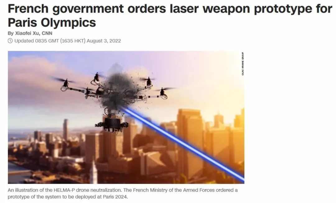 据CNN3日报道,为了确保2024年巴黎奥运会安全开展,法国武装部队6月宣布,将部署一种激光反无人机系统,用以防范恐怖袭击。