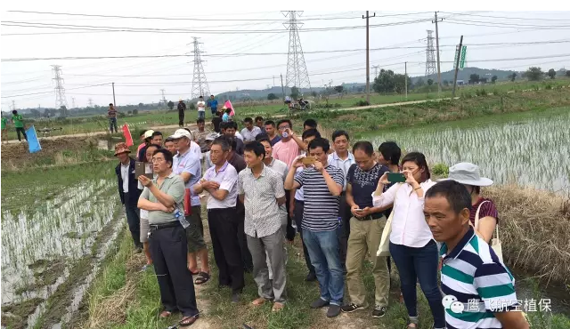 观摩会现场,鹰飞航空植保王安东总经理向大家介绍了鹰飞植保无人机优异的喷洒性能。相对传统的水稻防治作业,无人机作业更加高效。无人机喷晒利用高压喷头雾化,喷晒均匀,作物可以充分吸收。鹰飞植保无人机一次起飞,满载药可以达到10公斤,大功率运作。另外操控灵活,拥有超声波定高系统,可以定高为两米、三米、四米。