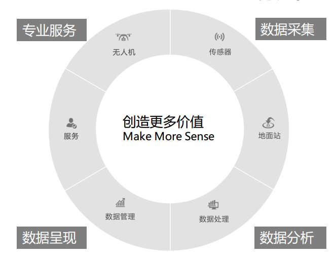 无人机人工智能与大数据:国内商用无人机及数据智能领域的引领者,围绕数据,为客户提供端到端的采集、分析、呈现及服务一体的完整解决方案。集成无人机技术、机器视觉技术、地理信息技术、遥感技术,让空中数据为行业创造更多价值。让无人机成为会飞的传感器,引领空中信息化革命。使用云端可视化管理系统,实现航线规划、项目管理、三维建模、数据分析;无人机搭载智能模块实时感知,实时数据分析,实现目标识别,人流量统计,高精度定位,数据智能分析