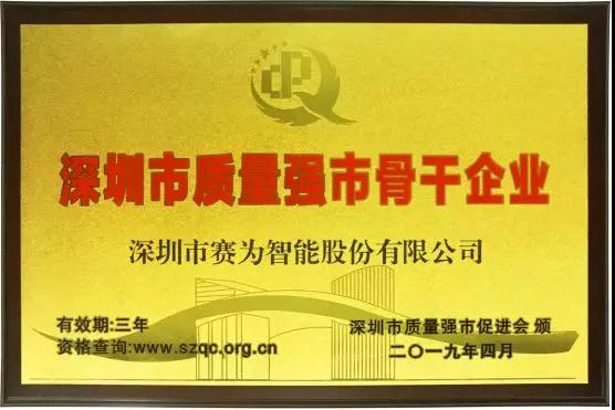 4月28日,由深圳市质量强市工作领导小组办公室指导、市质量强市促进会主办的2019年深圳市质量强市促进大会暨质量强市建设年度盛典在市民中心举行。大会以“高质量创造美好生活”为主题,深圳市人民政府副市长黄敏等领导及400多名各界代表出席大会。大会发布了多个奖项,深圳市赛为智能股份有限公司获第四批“深圳市质量强市骨干企业”称号。