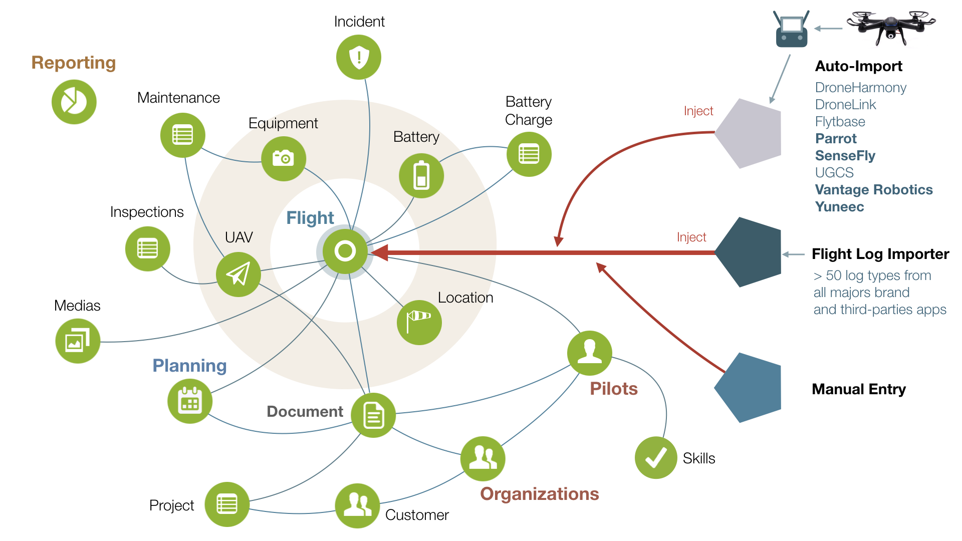 瑞士无人机安全组织Safetydrone是跨平台自动化飞行日志的领导者。我们支持的文件类型比任何人都多。我们的信念是,在选择日志时,它应该支持您拥有的所有工具,无论制造商(硬件)或开发人员(软件)如何。因此,随着您的成长,我们为您提供管理运营所需的灵活性。