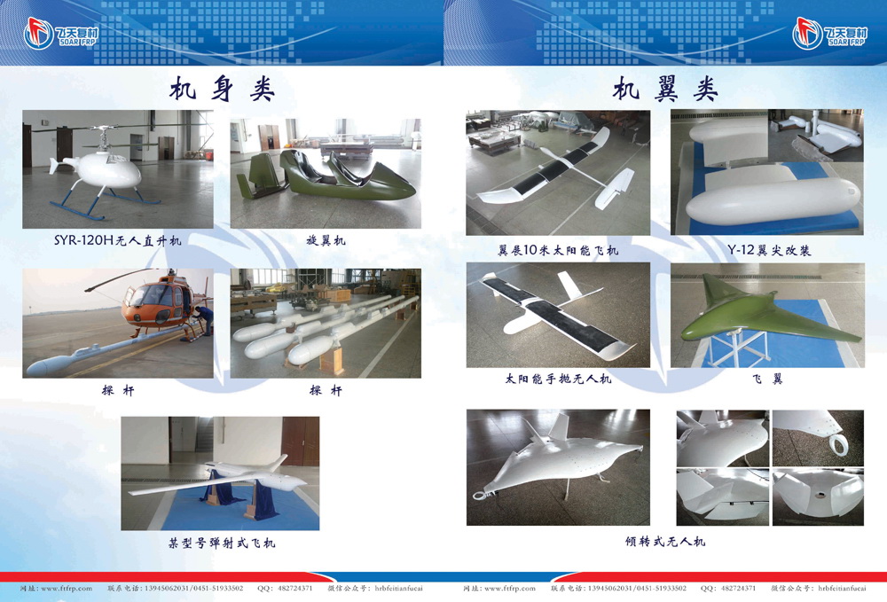 自公司成立以来,先后承担了国产大型客机C919机身尾部研制、海鸥Ⅱ型共轴无人直升机机身及桨叶研制、V750无人直升机机身部件研制、X200无人直升机机身及桨叶研制、翼展10米太阳能无人机的研制;Z9、Y12、S300、BZK005等型号飞机的改装复合材料制件研制;国家863高科技项目航空物探复合材料制件研制;某型号地面飞行模拟器控制舱及模拟舱研制;某军用旋翼机的生产;旋翼修理修补;用于水中模拟试验的舰船缩比模型及用于展示的缩比飞机模型研制;新能源汽车及叉车复合材料件制造等。