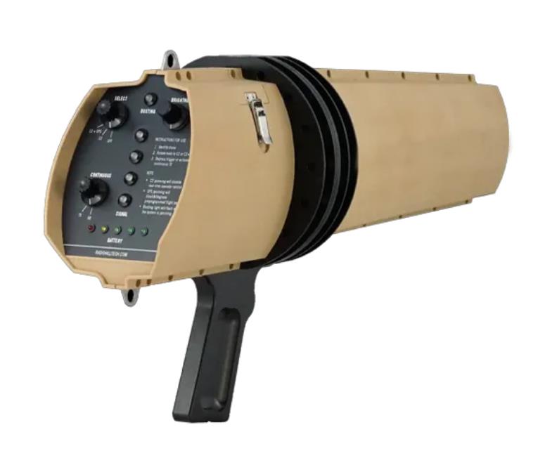 美国Flex Force公司(前身为Radio Hill)开发了Dronebuster RF无人机干扰器(手持反无人机武器),以解决无人机在未经授权区域飞行的问题。,Dronebuster旨在通过压制控制频率来中断对无人机的控制,重量不到5磅。该设备可根据无人机的型号,直接导致无人机坠毁、悬停或返回操作员。当无人机的数据链接被Dronebuster 能量淹没时,无人机操作员将失去对无人机的控制。无人机可以将这一步骤进一步向前推进,并且会使GPS信号不堪重负,这将导致无人机着陆或从空中坠落。