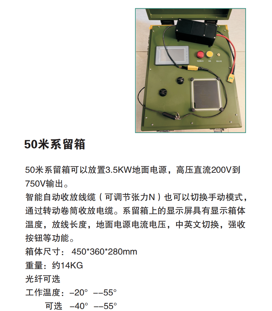 系留箱里的电源3.5KW到20KW,支持串并联。