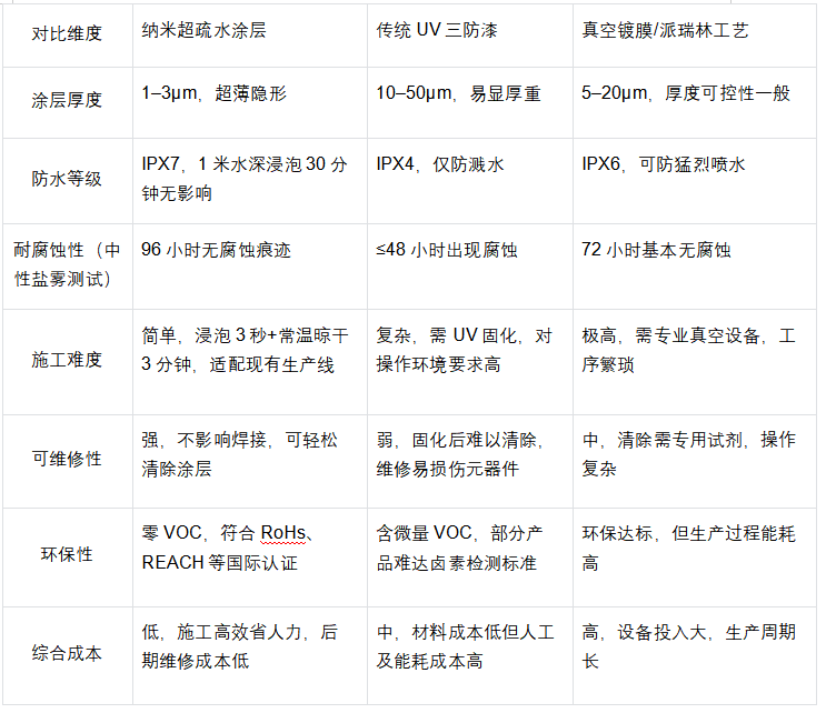 为更直观展现纳米超疏水涂层的优势,以下整理了其与传统防护工艺的核心参数对比表,方便快速厘清差异: