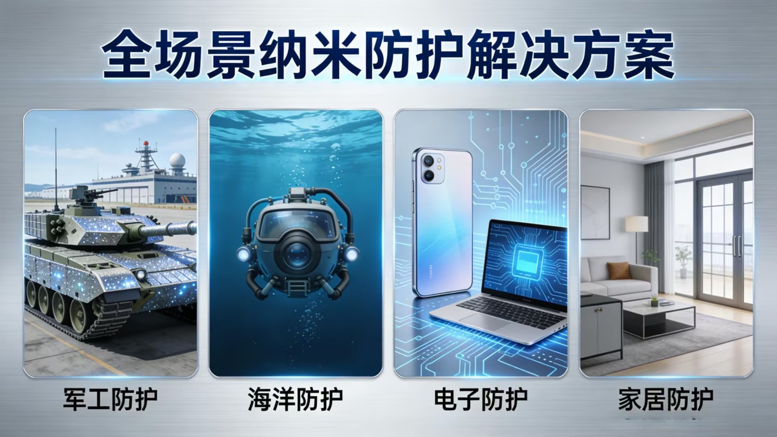 从高空翱翔的无人机到深海作业的海洋平台,从守护健康的医疗设备到走进日常的家电产品,从边疆坚守的军工装备到舒适便捷的户外服装,每一个场景的稳定运行,都离不开专业的防护技术。捷安纳米,以纳米科技为核心,打造全场景定制化防护解决方案,赋能千行百业高质量发展。