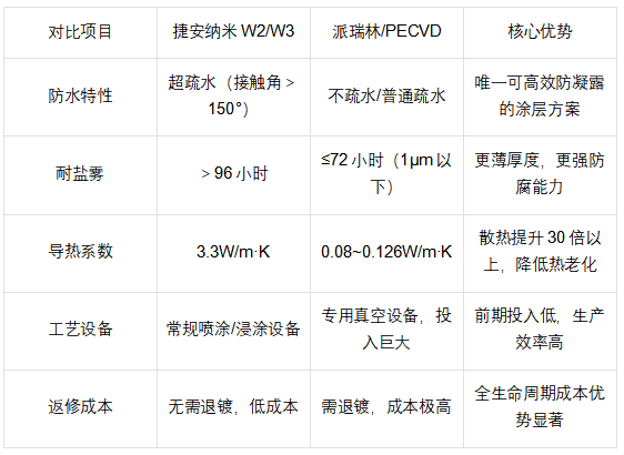 派瑞林、PECVD真空镀膜成本高、施工慢、返修极难,捷安纳米以高性价比、高效率成为更优选择。