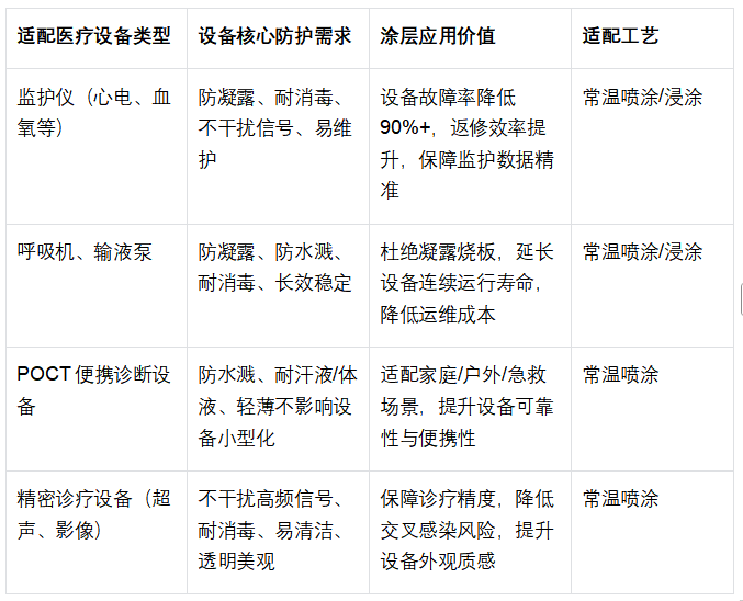 •工艺友好,降本增效易落地:采用常温喷涂或浸涂工艺,3分钟即可快速固化,无需高温或UV固化设备,适配医疗设备批量生产;可直接焊接测试,无需打磨去除涂层,大幅降低返修成本与人工成本。