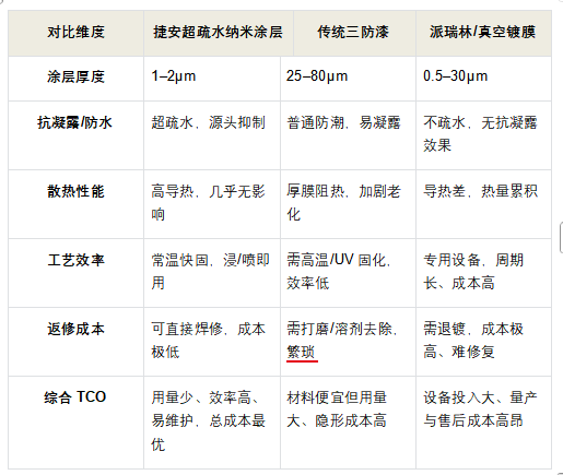 3. 散热与防护矛盾:传统三防漆/灌封胶厚度大、导热差,加剧高功率器件热老化,影响性能与安全。