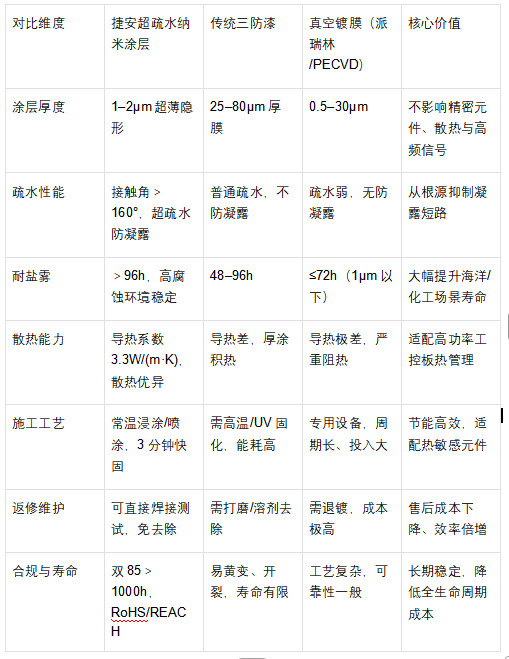二、捷安超疏水纳米涂层核心优势(工控适配版)