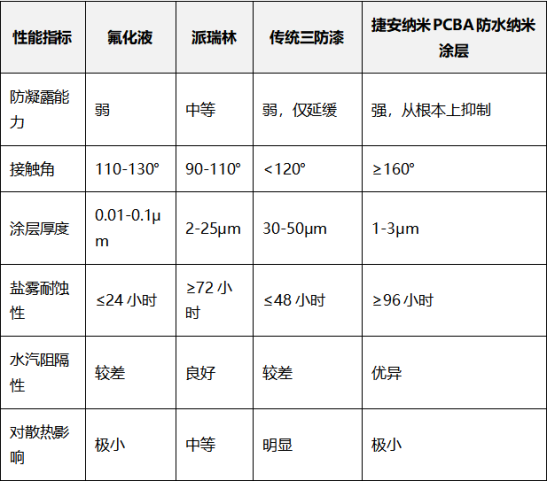 二、捷安纳米PCBA防水纳米涂层与传统防护工艺性能对比