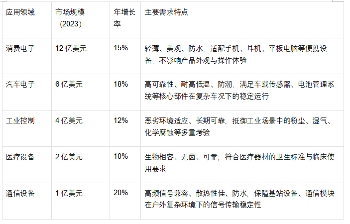 从市场分布来看,消费电子领域凭借庞大的市场基数占据主导地位,而汽车电子与通信设备领域凭借超15%的年增长率成为市场增长的核心引擎,工业控制与医疗设备领域则保持稳健增长,整体呈现“多点开花、结构优化”的市场格局。