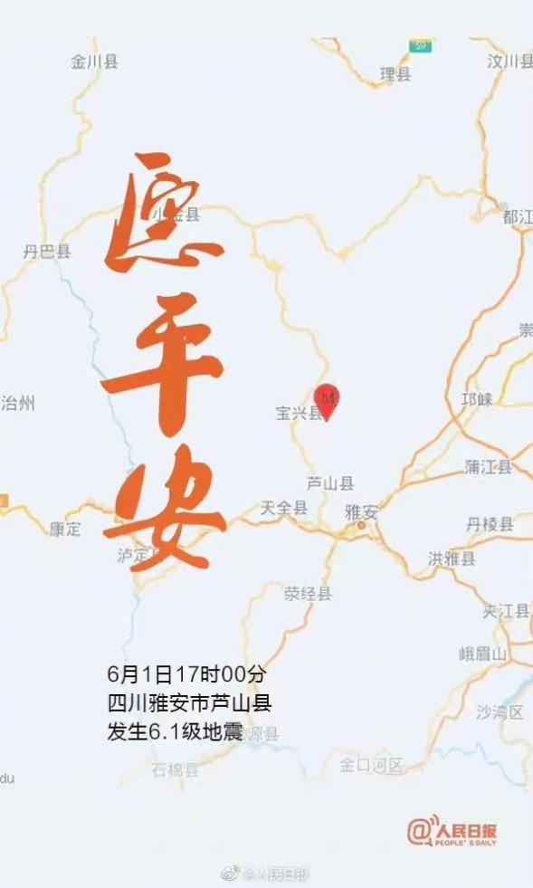 据央视新闻客户端消息,6月1日17时00分,雅安市芦山县发生6.1级地震,震源深度17公里;17时03分,雅安市宝兴县发生4.5级地震,震源深度18公里。