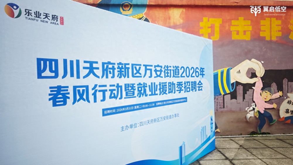 2026年3月31日,四川天府新区万安街道2026年 “春风行动暨就业援助季招聘会” 火热启幕,作为新区低空经济领域标杆企业,翼启低空(四川蓉翼飞无人机科技有限公司)受邀参展,携无人机飞手、飞控工程师、销售经理等全链条核心岗位亮相,成为现场备受瞩目的 “人才吸铁石”。