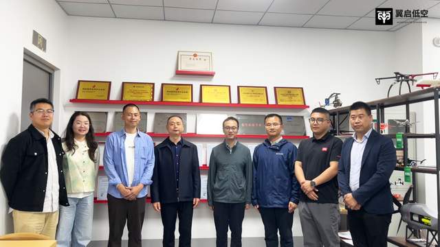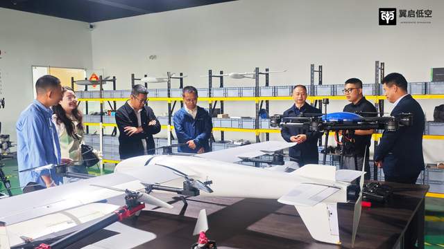 在蔡东阳总经理的陪同下,殷文昌主任一行首先参观了翼启低空成都总部研发中心,实地了解了企业在无人机系统研发、行业应用解决方案、低空经济产业布局等方面的最新成果。翼启低空近年来在农业植保、测绘巡检、应急救援等领域积累了大量实战案例,自主研发的无人机平台及配套软硬件设施给来访教师留下了深刻印象。