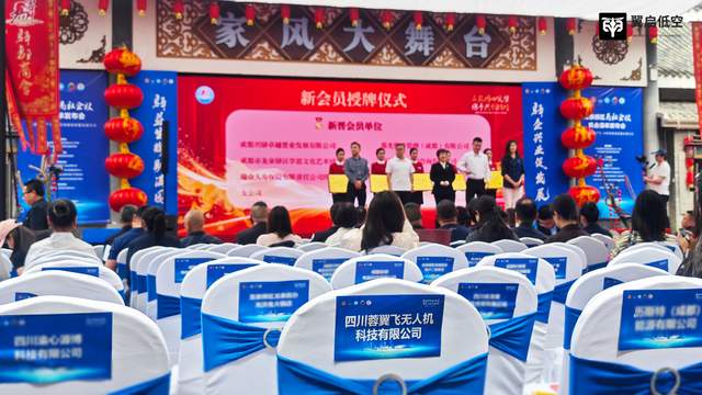 2026 年 4 月 22 日,成都市龙泉驿区驿都商会三周年庆典暨 "商社企校" 机会清单发布会在龙泉驿区驿都商会隆重举行。本次活动以 "三载同心筑梦,携手共创辉煌" 为主题,同步举办驿都商会 2026 年会员(代表)大会,翼启低空(四川蓉翼飞无人机科技有限公司)作为区域科技企业代表受邀参会,与政企校社各界代表共襄盛会、共商合作、共谋发展。