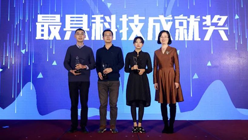 青岛普宙航空科技有限公司总经理胡倩上台领奖(右2)