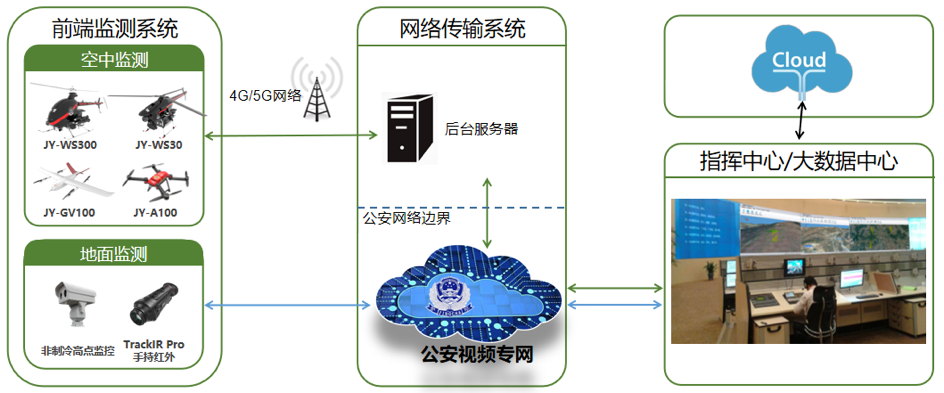 > 定点监测数据传输:通过公安视频专网,将设备统一接入指挥中心统一管理。