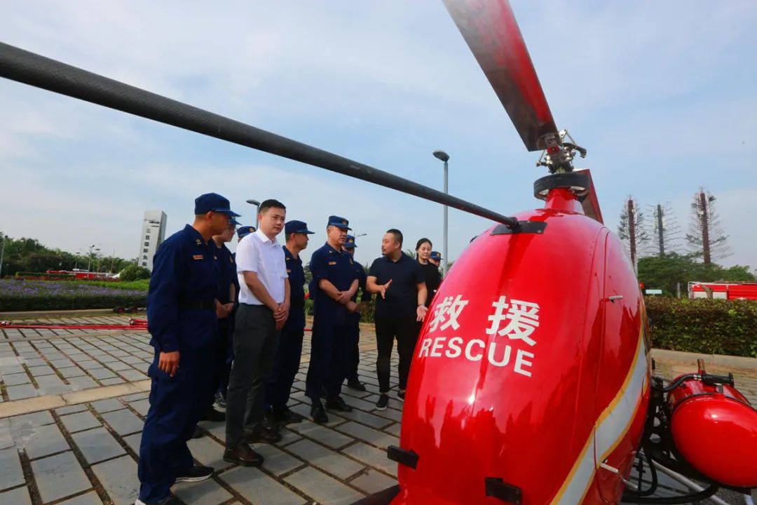 吴施彬副总队长现场对重型灭火直升机进行了解