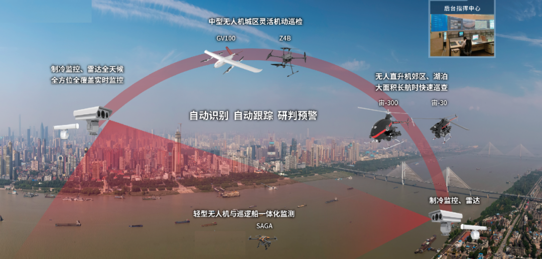 长江武汉段水域的日常巡查,除了机动灵活的无人机外,还在沿江沿湖关键高点位置增设红外监控设备,构筑起“天上高点监控、空中无人机巡航、江面快艇巡查、岸边机动车巡逻”的“四位一体”防控体系,确保武汉市“两江四湖”禁捕工作无死角、无盲区。