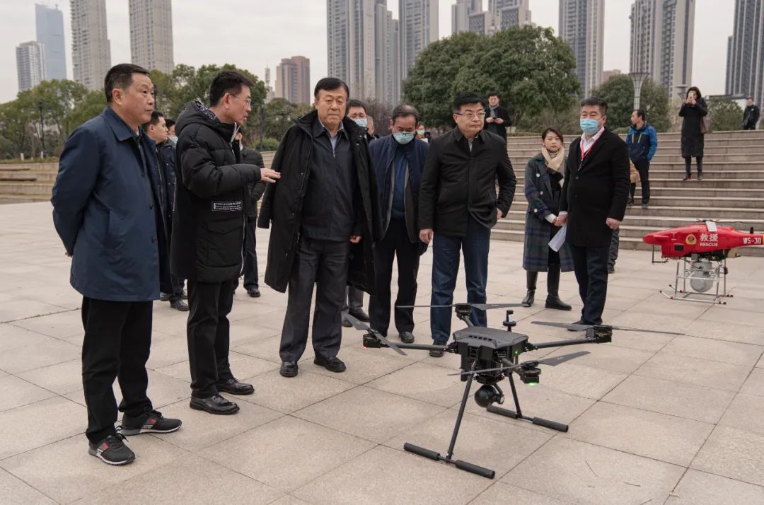 下午两点,调研组一行到达武汉渔政码头江滩三期广场,于康震等领导在现场观看了普宙无人机的巡江飞行展示,普宙董事长黄立在演示期间对陈列在江岸上的各类“空中巡航”技防无人机进行详细介绍。