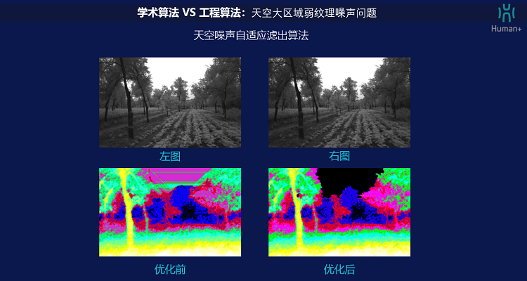 3.飞行状态算法优化:行业级无人机需要对细杆、斜向电线等障碍物进行识别,并且飞行过程会实时受到天空噪声干扰。人加智能的算法能对此类噪声进行抑制,同时对于小面积弱纹理又能保持比较好的效果。