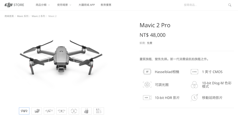 此外,Mavic 2 专业版的影片支援10-bit Dlog-M 色彩模式,在后期用Final Cut、Premiere 等软体调色时,可以大的后期空间。
